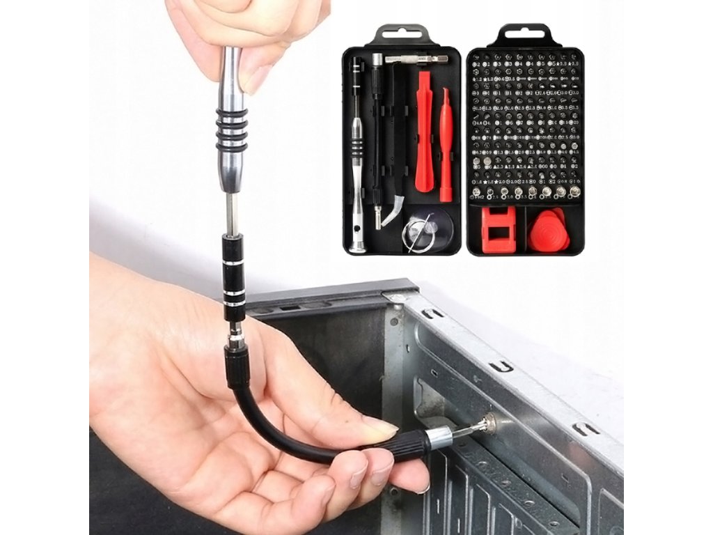 SERWISOWY ZESTAW 110 NARZĘDZI I BITÓW DO NAPRAW TELEFONÓW, TABLETÓW ORAZ RTV