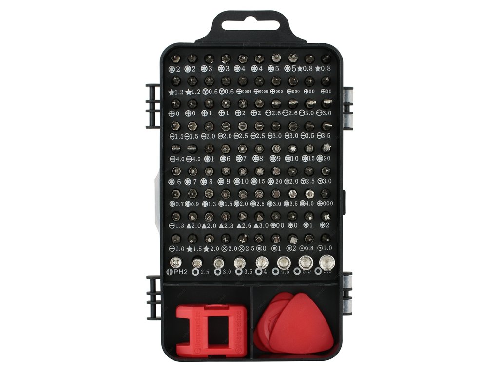 RT0140 to zestaw 110 precyzyjnych narzędzi, bitów i otwieraków z lekkim aluminiowym uchwytem przeznaczony do precyzyjnych napraw serwisowych telefonów i smartfonów w tym produktów marki Apple oraz wszelkiej elektroniki konsumenckiej.