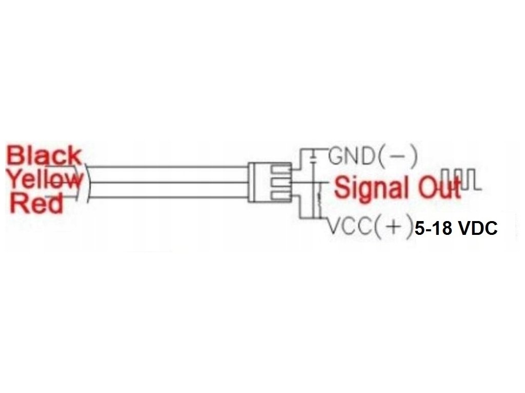 Merač má tri vodiče: čierny je mínus výkon, červený je mínus plus, žltý vodič je signálny vodič