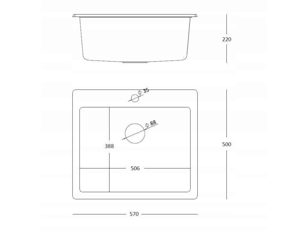 • Rozmery umývadlo 570 mm x 500 mm x 220 mm
