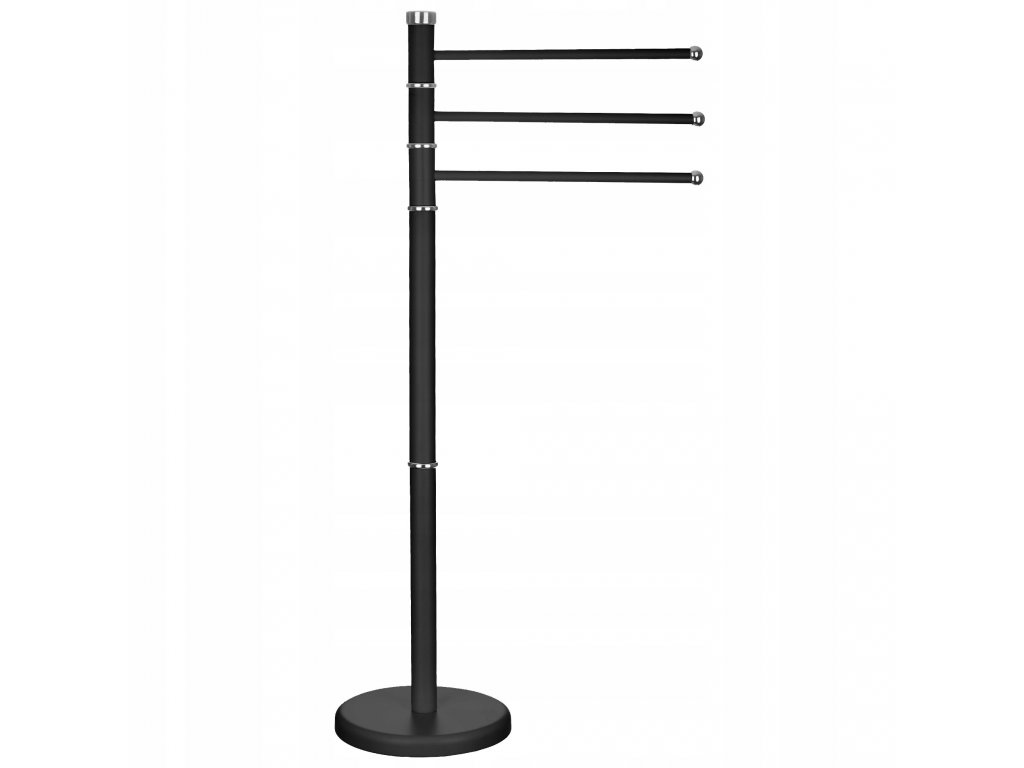 Metalowy czarny stojak posiada 3 obrotowe ramiona, na których można zawiesić ręczniki ustawiając je tak aby nie stykały się ze sobą.  Funkcjonalny, estetyczny produkt, który znajdzie zastosowanie w każdej łazience.
