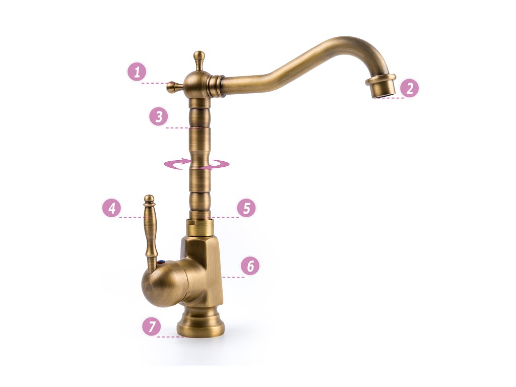 • bateria wykonana z mosiądzu, pokryte 4-krotną powłoką w kolorze stare złoto