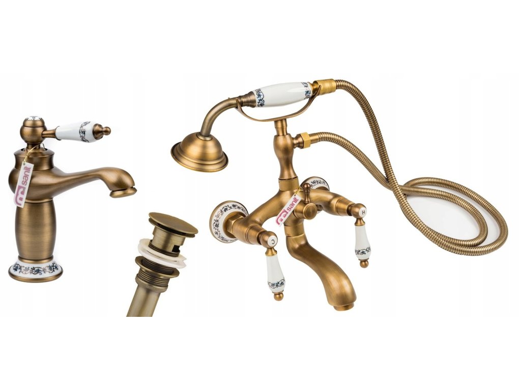 Zestaw RETRO 125 bateria wannowa + bateria umywalkowa + korek klik klak w kolorze starego złota