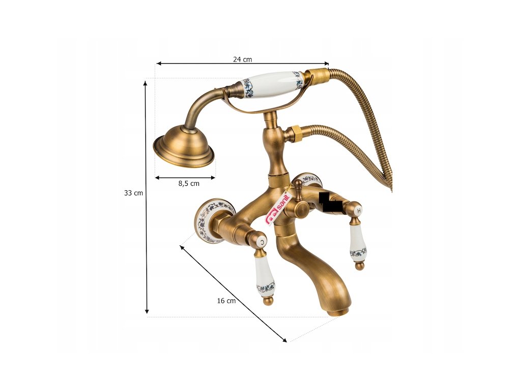 • wykonany w całości z mosiądzu, pokryty 4-krotną powłoką w kolorze  stare złoto