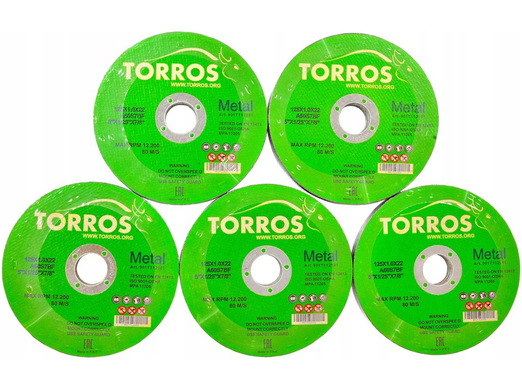 Tarcze Torros 125x1x22.2 nadają się do cięcia grubych i ciękich blach, profili, rur kątowników, prętów... Tarcze przeznaczone są do pracy ze szlifierkami kątowymi wszystkich producentów.