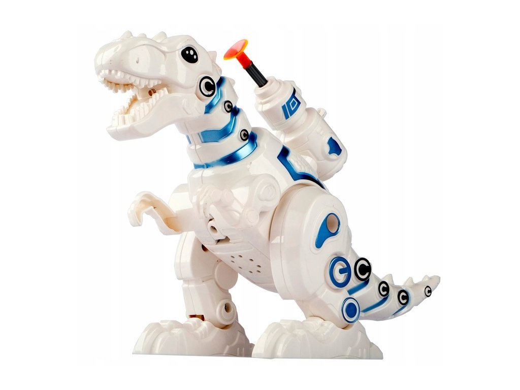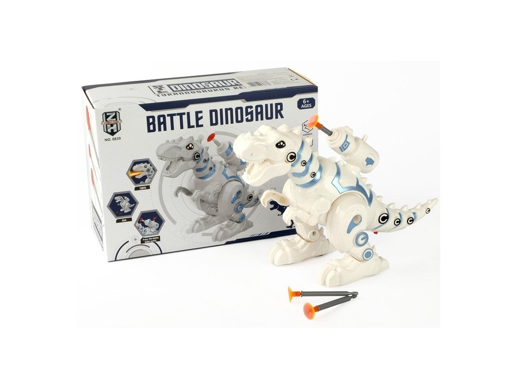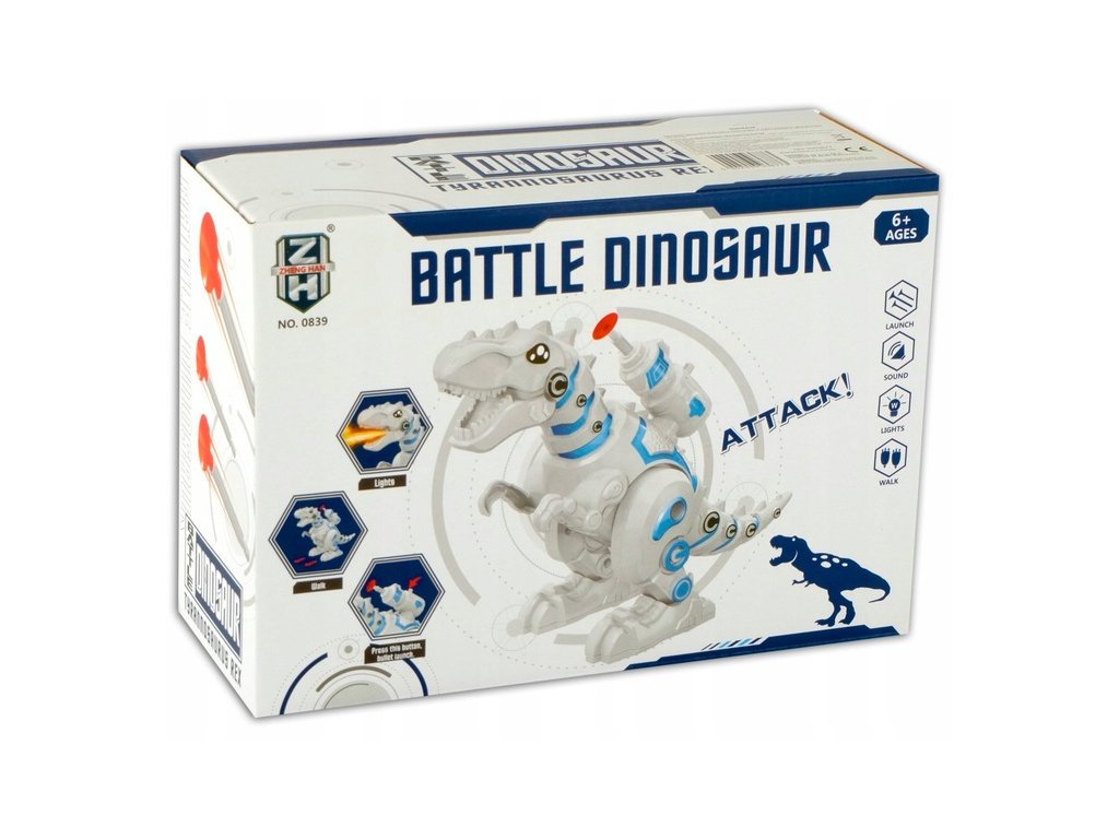 Battle Dinosaur je najnovší počin v robotike a hračka, s ktorou sú možnosti pre deti obrovské. Prišiel na zem, aby poslúchol tvoje príkazy a ukázal ti svoje schopnosti. Spustite robota. Dinosaurus začne chodiť, rozsvietia sa mu LED svetlá v ústach, budete počuť „strašidelné“ zvuky, hukot sú jeho bojové zvuky. Pripravte si šípkovú zbraň na boj v Galaxii. Stlačte tlačidlo a šípky poletia ďaleko smerom k súperovi. Robot sa pohybuje, nohy má na kolieskach. Vymyslite si vlastné galaktické dobrodružstvá!