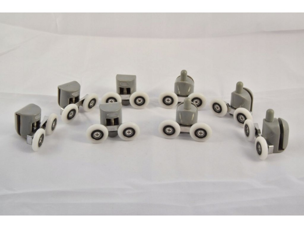 Uniwersalny zestaw naprawczy do kabiny prysznicowej składający się z 4 podwójnych rolek dolnych oraz 4 rolek górnych. Uniwersalna rolka D05+G05 pasuje do większości kabin dostępnych na polskim rynku, dzięki wykorzystaniu wysokiej jakości materiałów o podwyższonej odporności m. in. na korozję oraz kamień wapienny doskonale nadaje się do użytku w każdych warunkach. Rolka posiada ruchomy element wypinający, dzięki czemu doskonale dopasowuje się do toru jezdnego kabiny oraz zapewnia szybki demontaż drzwi bez konieczności użycia dodatkowych narzędzi.