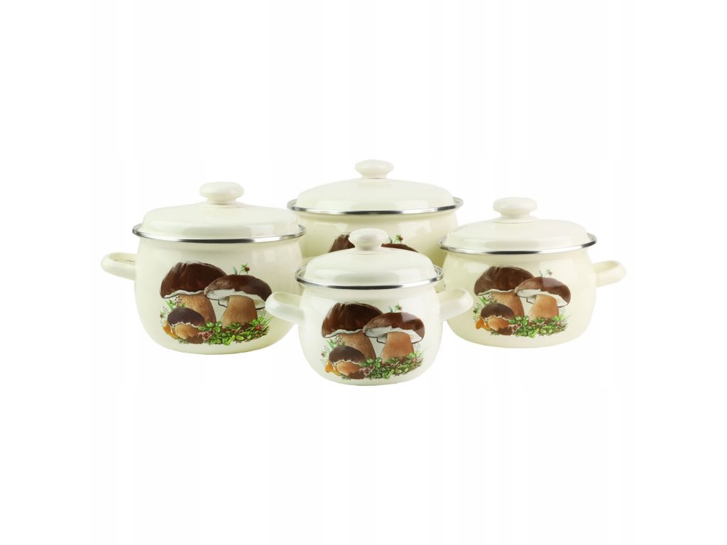 Garnki Emaliowane 8 el. Zestaw Promocja Wzór Grzybki hit