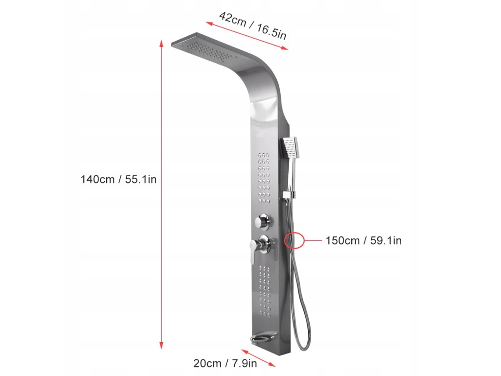 1. Wykonany z wytrzymałej stali nierdzewnej 304 i ma 3 funkcje: prysznic górny, prysznic ręczny i prysznic z hydromasażem. Indywidualne ustawienia za pomocą kontrolera funkcji.
