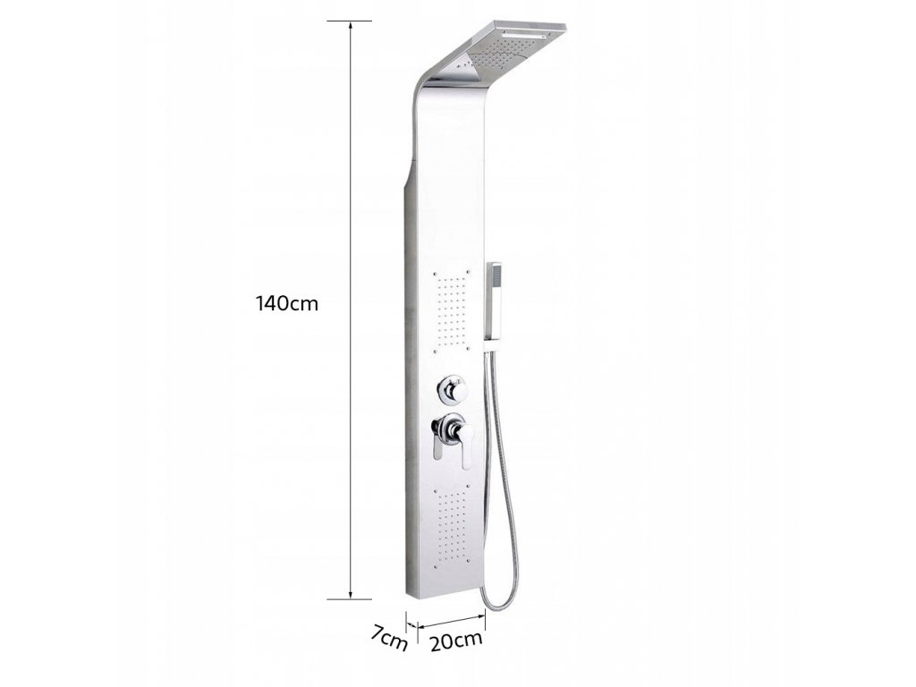 Panel prysznicowy z dyszami do hydromasażu i deszczownicą z funkcją wodospadu to nowoczesne rozwiązanie dostosowane do potrzeb użytkowników. Panel wykonany z nierdzewnej stali szczotkowanej doskonale wpisuje się w najnowsze trendy aranżacji wnętrz.