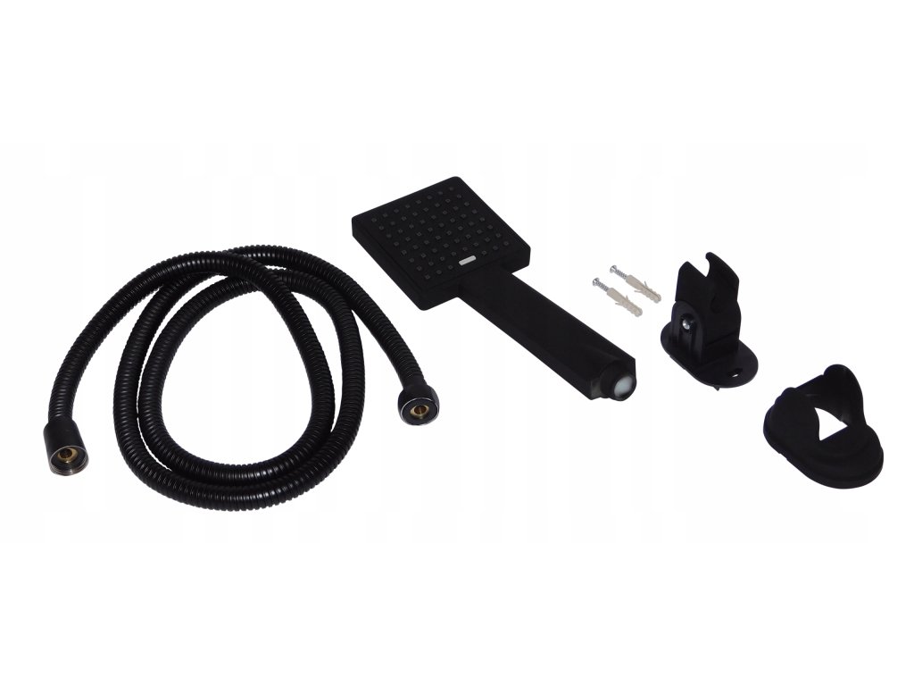 Słuchawka prysznicowa z wężem prysznicowym długości 1,5 m, z uchwytem z regulacją położenia słuchawki.