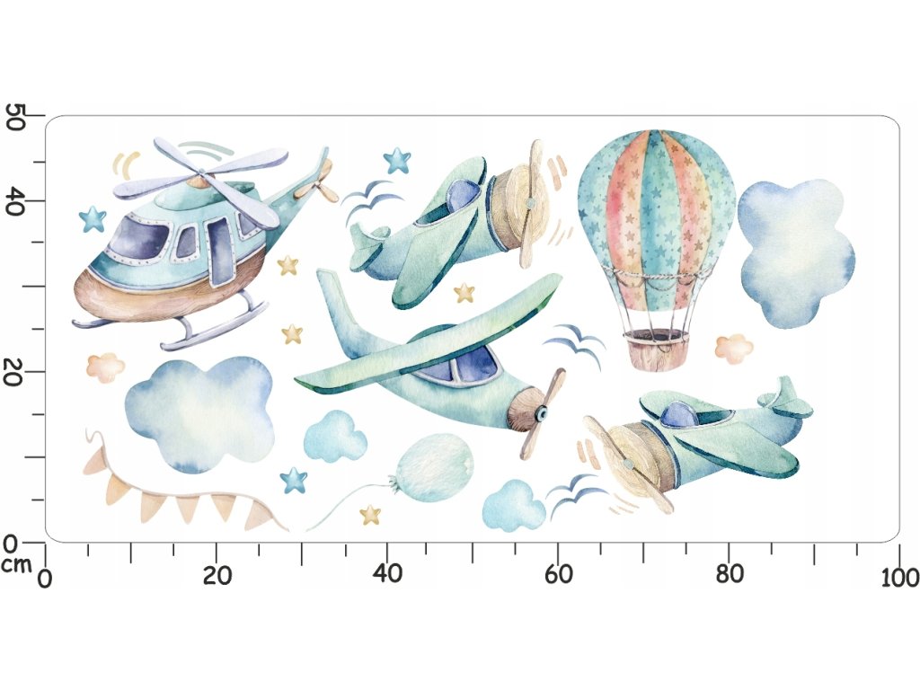 Samolepky na stenu pre detské lietadlá D119 100cm