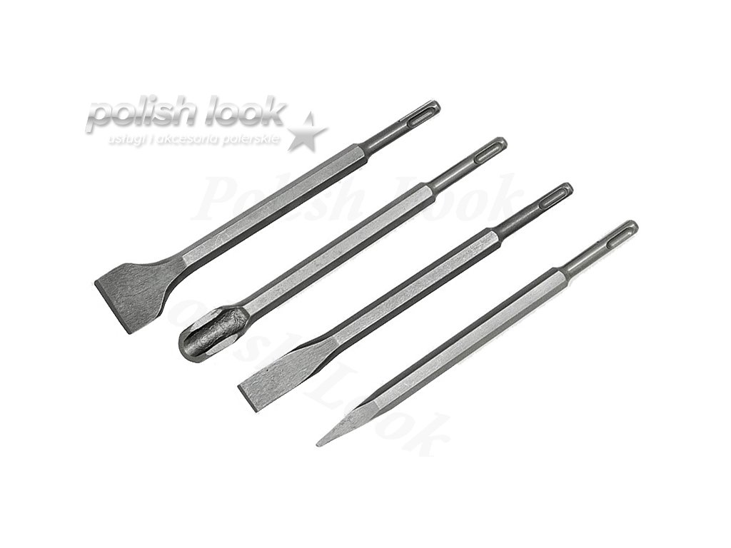 Wysokiej jakości 4 elementowy zestaw dłut do betonu.