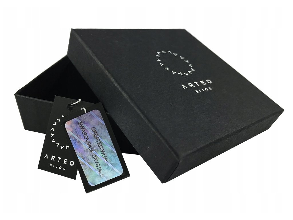 Do każdej biżuterii dołączona jest metka z logo Arteo Bijou oraz hologramem z napisem: Created with Swarovski crystals.