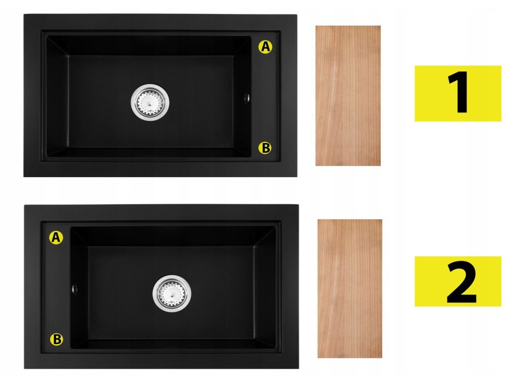 2. ILOŚĆ OTWORÓW W ZLEWOZMYWAKU I MIEJSCE WYKONANIA (A, B)
