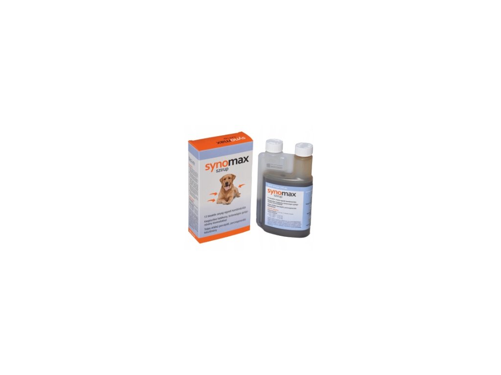 Charakteristika: Prípravok podporuje pohyblivosť kĺbov a elasticitu chrupavky. Chráni a regeneruje chrupavku, zmierňuje opuchy a zápaly, zmierňuje bolesti kĺbov. Použitie: - u starších psov trpiacich chorobami kĺbov, - ako doplnok liečby po operáciách, poškodeniach a zápaloch, - u psov s nadváhou, u pracovných a dostihových psov. Zloženie: Glukosamín sulfát 2,5 ml - 375 mg, 5 ml - 750 mg; Chondroitín sulfát 2,5 ml – 125 mg, 5 ml – 250 mg; metylsulfonylmetán (MSM) 2,5 ml – 125 mg, 5 ml – 250 mg; Hydrolyzát želatíny (prasačí) 2,5 ml - 25 mg, 5 ml - 50 mg; Omega-3 rybí olej 2,5 ml – 2,5 mg, 5 ml – 5 mg; Kyselina hyalurónová 2,5 ml – 1,25 mg, 5 ml – 2,5 mg. Harpagophytum procumbens 2,5 ml – 100 mg, 5 ml – 200 mg; Boswelia serrata 2,5 ml – 10 mg, 5 ml – 20 mg; Bromelain 2,5 ml – 10 mg, 5 ml – 20 mg; Síran manganatý (E5) 2,5 ml – 2, 5 mg, 5 ml – 5 mg; Vitamín A (E 672) 2,5 ml – 250 IU, 5 ml – 500 IU; Vitamín C (E 300) 2,5 ml – 25 mg, 5 ml – 50 mg; Vitamín E (E 700) 2,5 ml – 2,5 IU, 5 ml – 5 IU. Pôsobenie zložiek Synomax: Glukosamín sulfát podporuje proces regenerácie chrupavky a zlepšuje viskozitu synoviálnej tekutiny. Chondroitín sulfát obnovuje elasticitu kĺbovej chrupavky, zastavuje proces jej deštrukcie a zároveň pôsobí protizápalovo. MSM (metylsulfonylmetán) – bežne považovaný za analgetikum pri zápaloch kĺbov. Harpagophytum procumbens (čertov pazúr) má ochranný účinok tým, že inhibuje aktivitu enzýmov, čím zabraňuje vzniku zápalov kĺbov. Boswellové kyseliny (extrakt z Boswellia Serrata) majú silné protizápalové a analgetické vlastnosti. Chránia a zvyšujú prietok krvi v kĺboch. Bromelaín je protizápalový faktor, ktorý podporuje regeneráciu tkanív. Kyselina hyalurónová prispieva k udržaniu optimálnej úrovne pohyblivosti kĺbov. Hydrolyzát želatíny obsahuje 18 voľných aminokyselín potrebných pre stavbu kolagénu, ktorý je základnou zložkou kĺbovej chrupavky. Pomer a zloženie aminokyselín zodpovedá zloženiu a pomeru aminokyselín, ktoré budujú kolagén. Rybí olej (mastné kyseliny Oleg-3) znižuje produkciu cytokínov – mediátorov zápalu tvoria základnú zložku kĺbovej chrupavky. Pomer a zloženie aminokyselín zodpovedá zloženiu a pomeru aminokyselín, ktoré budujú kolagén. Rybí olej (mastné kyseliny Oleg-3) znižuje produkciu cytokínov – mediátorov zápalu tvoria základnú zložku kĺbovej chrupavky. Pomer a zloženie aminokyselín zodpovedá zloženiu a pomeru aminokyselín, ktoré budujú kolagén. Rybí olej (mastné kyseliny Oleg-3) znižuje produkciu cytokínov – mediátorov zápalu.