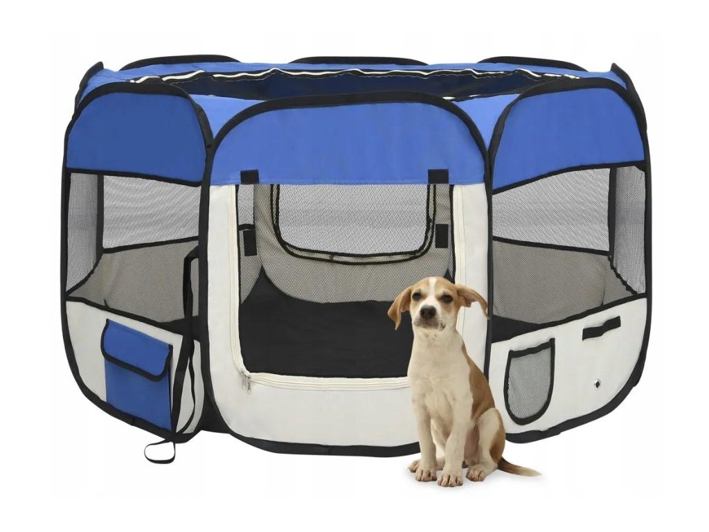 Skladacia ohrádka pre psa s taškou 110x110x58 cm MODRÁ VYPR
