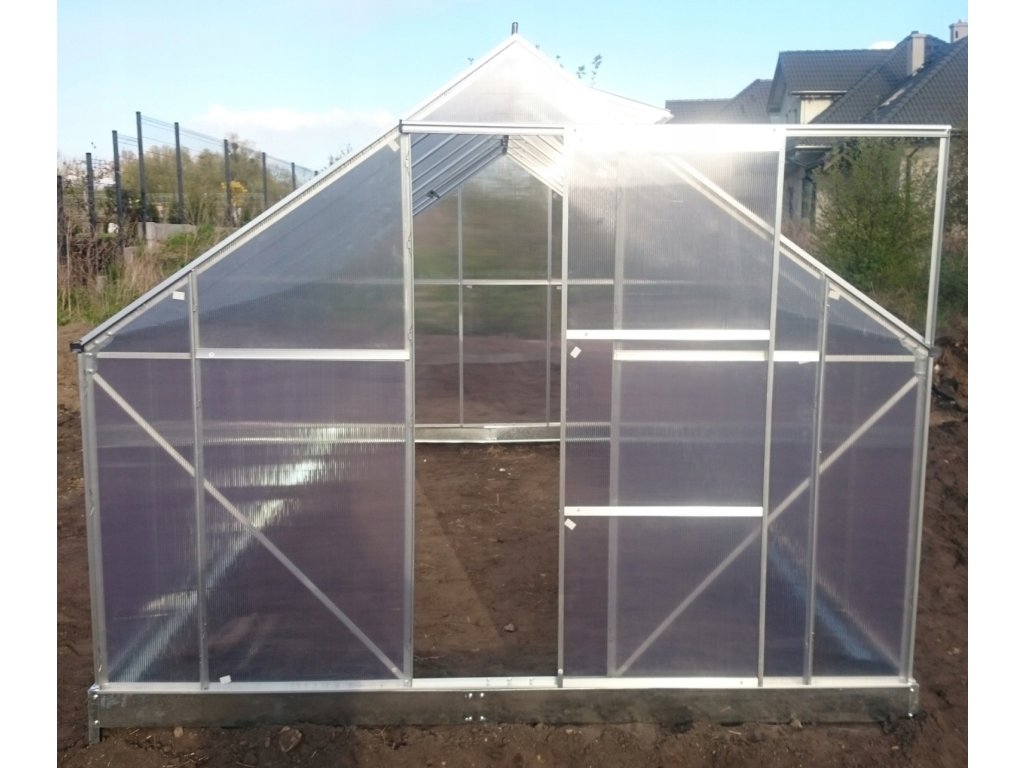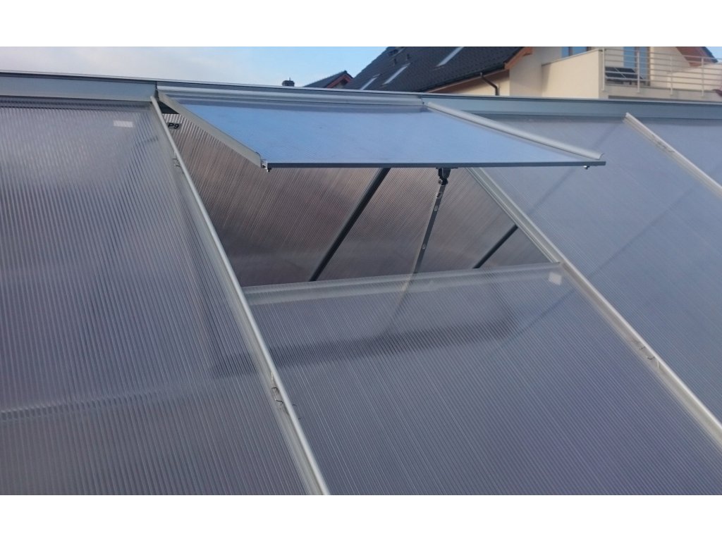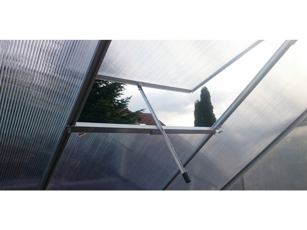 Ta piękna szklarnia może wkrótce ozdobić Twój ogród. Dzięki anodowanej aluminiowej ramie i izolującym panelom komorowym o grubości 6 mm, szklarnia może wytrzymać temperatury od -25°C do 60°C. Dlatego będzie to świetne rozwiązanie do ochrony roślin przed zimnem. Szklarnia ma przesuwane drzwi dla łatwego dostępu. Posiada również dwa okna na dachu dla optymalnej wentylacji. Okna można dowolnie umiejscowić w połaci dachu.
