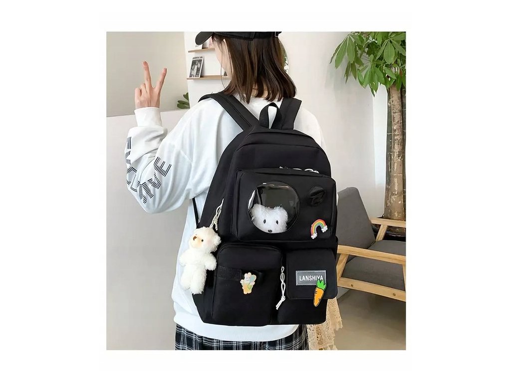 Školská taška - batoh 5 v 1 polyesterové plátno ČIERNA VYPR