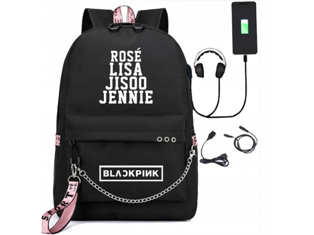 • súčasťou batohu je USB kábel, Jack slúchadlový kábel, kombinovaný visiaci zámok, svietiaci peračník, BLACKPINK taška