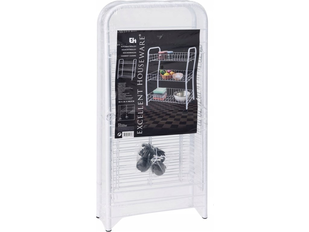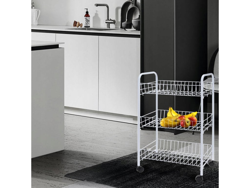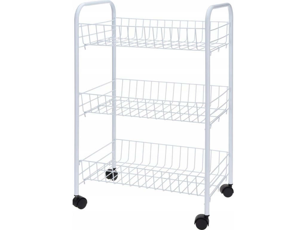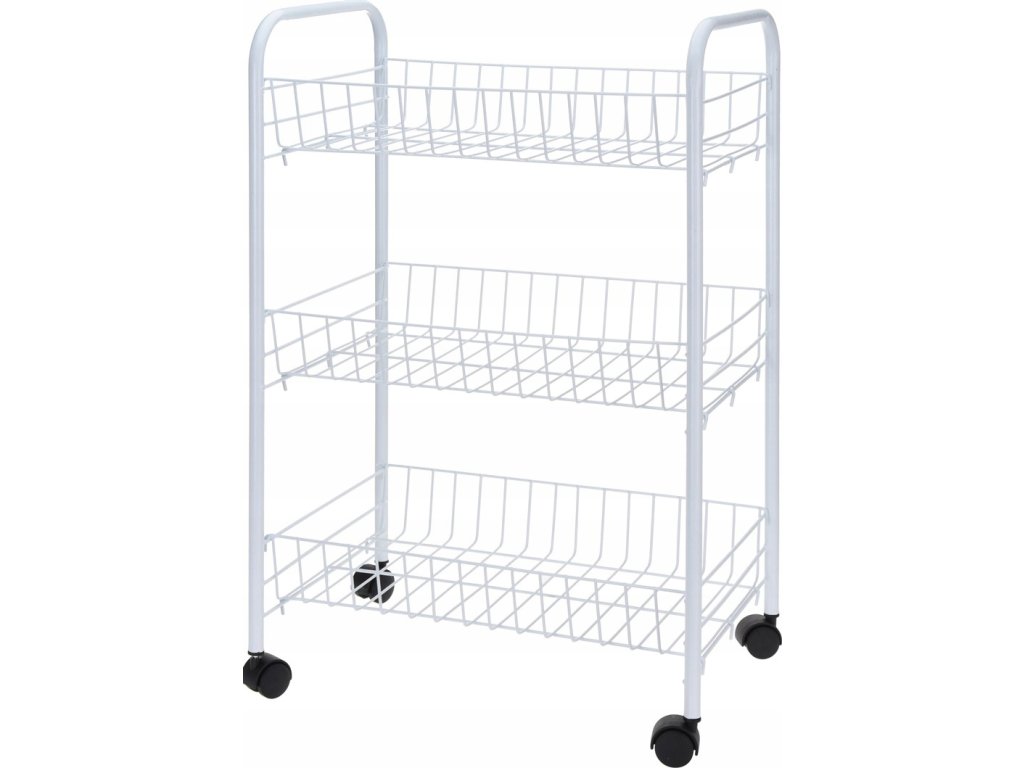 Praktyczna, funkcjonalna i prosta szafka / wózek kuchenny, który znajdzie swoje miejsce zarówno w kuchni jak i w łazience. Dzięki trzem pojemnym półkom zmieszczą się niezbędne rzeczy, które zawsze warto mieć pod ręką