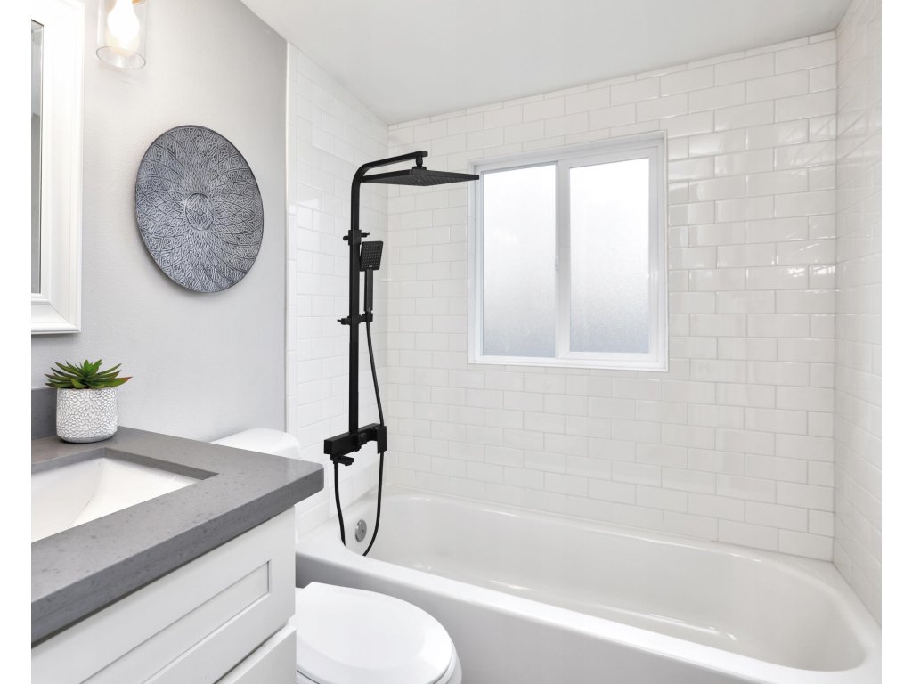 BATERIA NATRYSKOWA WANNOWA Z DESZCZOWNICĄ 30 x 30 CM - czarna