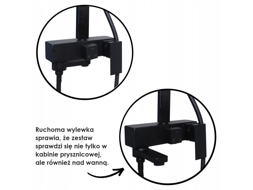 ✔ Przełącznik mechaniczny deszczownica / słuchawka w baterii