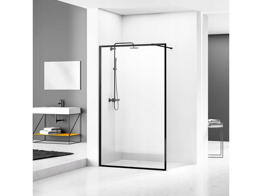 Sprchová zástena WALK IN 70x195 cm / 8 mm, ČIERNA