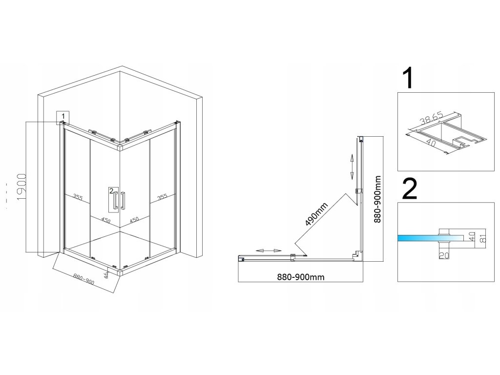 rozmiar: 900x900x1900 mm