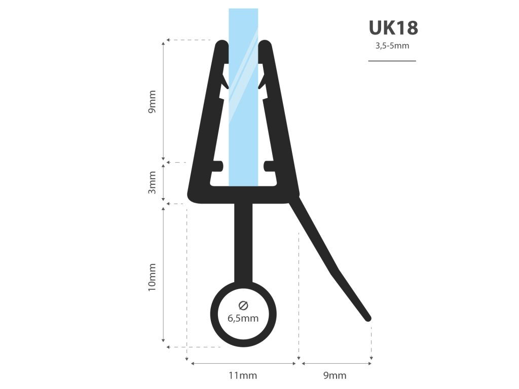 Univerzálnosť :. utesnenie sprchu UK18 zmestili skla s hrúbkou 3,5-5 mm