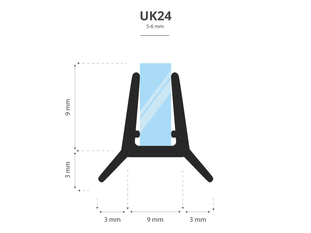 Uszczelka do kabiny prysznicowej UK24-06 jest przeznaczona do kwadratowych i prostokątnych kabin prysznicowych (na innych aukcjach znajdują się modele dedykowane kabinom półokrągłym) z szybą o grubości 5-6 mm. Uszczelkę należy zamontować na dolnej lub bocznej krawędzi szyby. Po instalacji uszczelka nie przesuwa się ani o milimetr. Dwa skrzydełka skutecznie zabezpieczają szczelinę przed wylewaniem się wody.