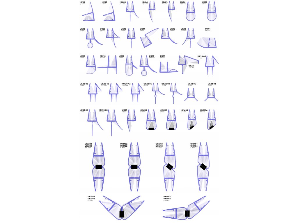 Większość modeli uszczelek jest dostępnych również w wersji giętej do kabin półokrągłych. Uszczelki magnetyczne UKM do drzwi kabin prysznicowych są dostępne tylko w długości 200 cm.