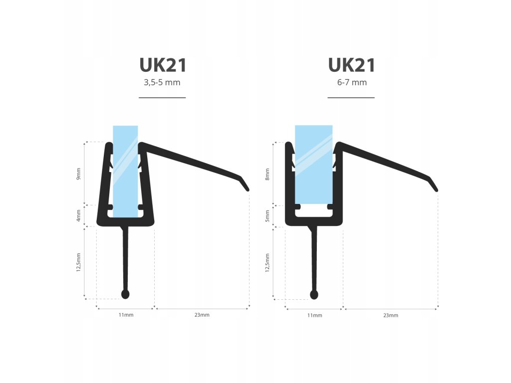 Uniwersalność: uszczelka do kabiny prysznicowej UK21 jest przeznaczona do szkła o grubości 3,5 - 7 mm.