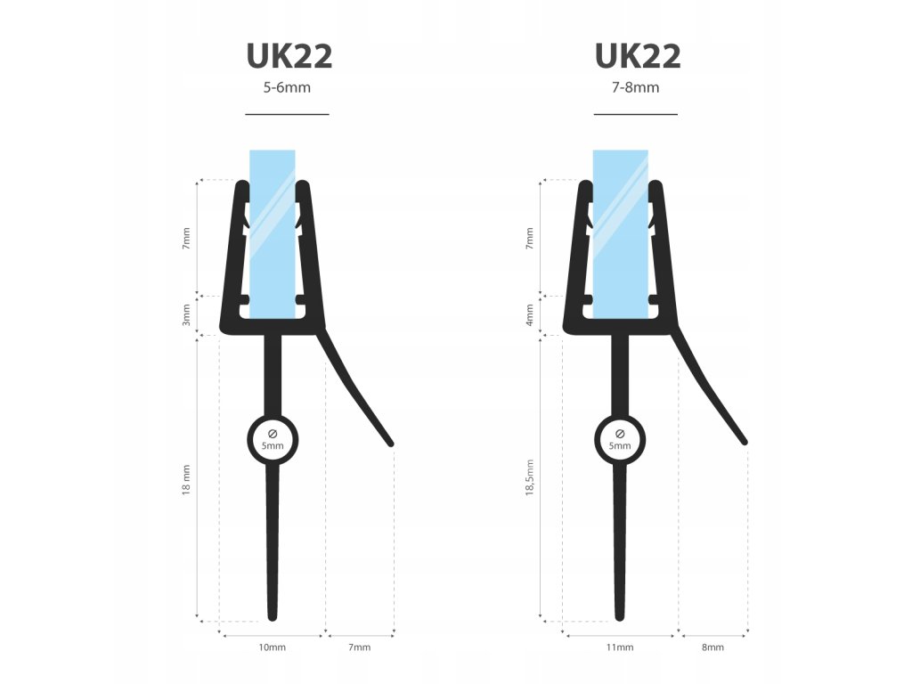 Univerzálnosť :. utesnenie sprchu UK22-06 vhodný pre hrúbku skla 5 mm a 6 mm