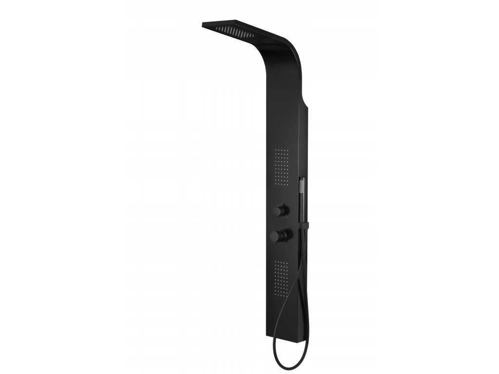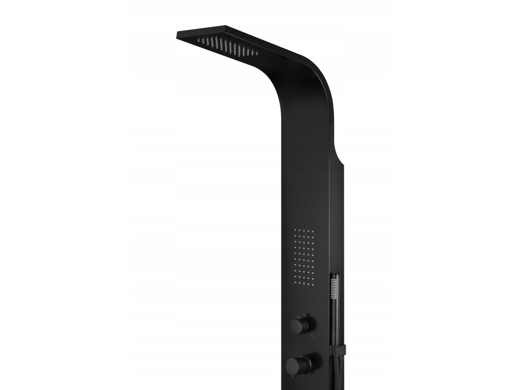 Czarny panel prysznicowy w idealnie prostym kształcie.