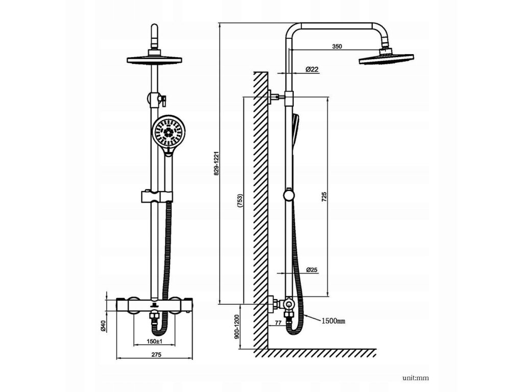 SPRCHOVÝ SÚPRAVA TERMOSTATU DIZAJN SPRCHA