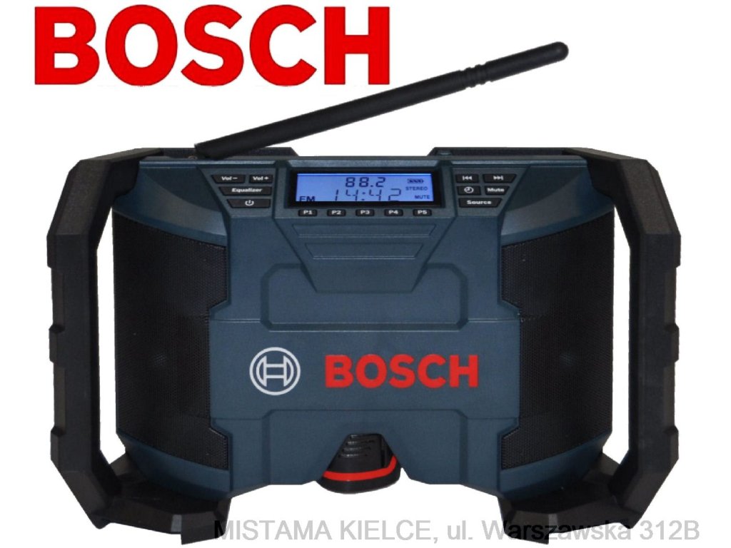 • Wysokiej jakości radio stereofoniczne FM/AM z 10 miejscami pamięci stacji radiowych, radio może być zasilane napięciem sieciowym 230V (poprzez zasilacz 12V znajdujący się w wyposażeniu), bądź akumulatorem litowo-jonowym firmy BOSCH o napięciu 10,8V lub 12V