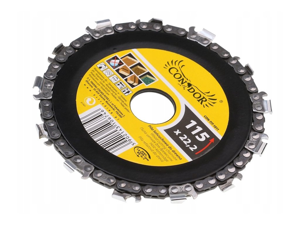 Wysokiej jakości piła łańcuchowa marki CONDOR. Tarcze łańcuchowe umożliwiają nam szybkie i łatwe cięcie drewna, za pomocą szlifierek kątowych. Dzięki zastosowaniu łańcucha tnącego minimalizujemy możliwość zacinania się (zakleszczania się) tarczy w ciętym materiale.