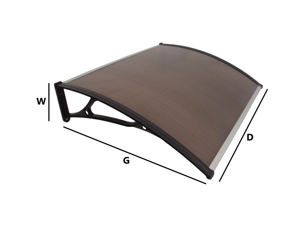 Pokrycie daszka stanowi poliwęglan komorowy dymiony (brązowy), natomiast wsporniki wykonane są z aluminium malowanego proszkowo na kolor czarny.