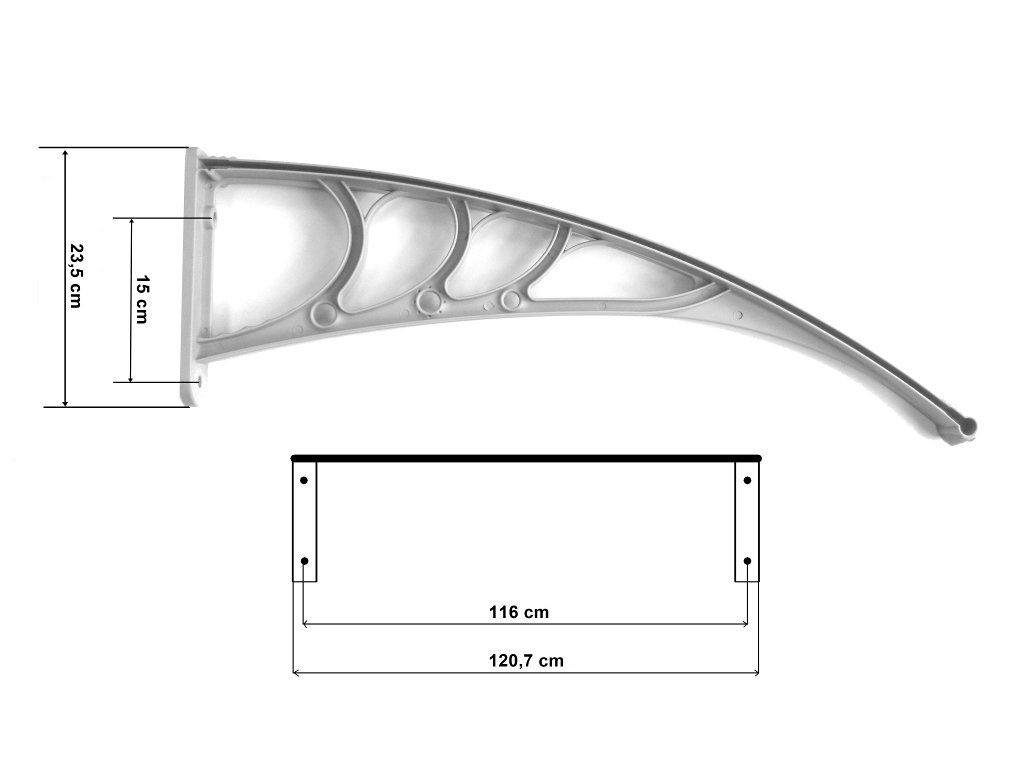 Zastosowanie najwyższej jakości tworzyw sprawia, iż konstrukcja daszka jest stabilna i mocna. Pokryciem daszka wykonane jest z płyty z poliwęglanu komorowego.