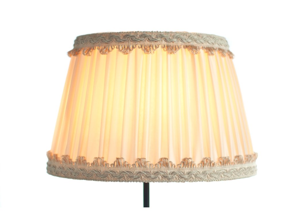 Abażur w stylu retro wykonany z tkaniny ręcznie marszczonej. Jest to klosz do średniej wielkości lamp gabinetowych, podłogowych jak i wiszących.