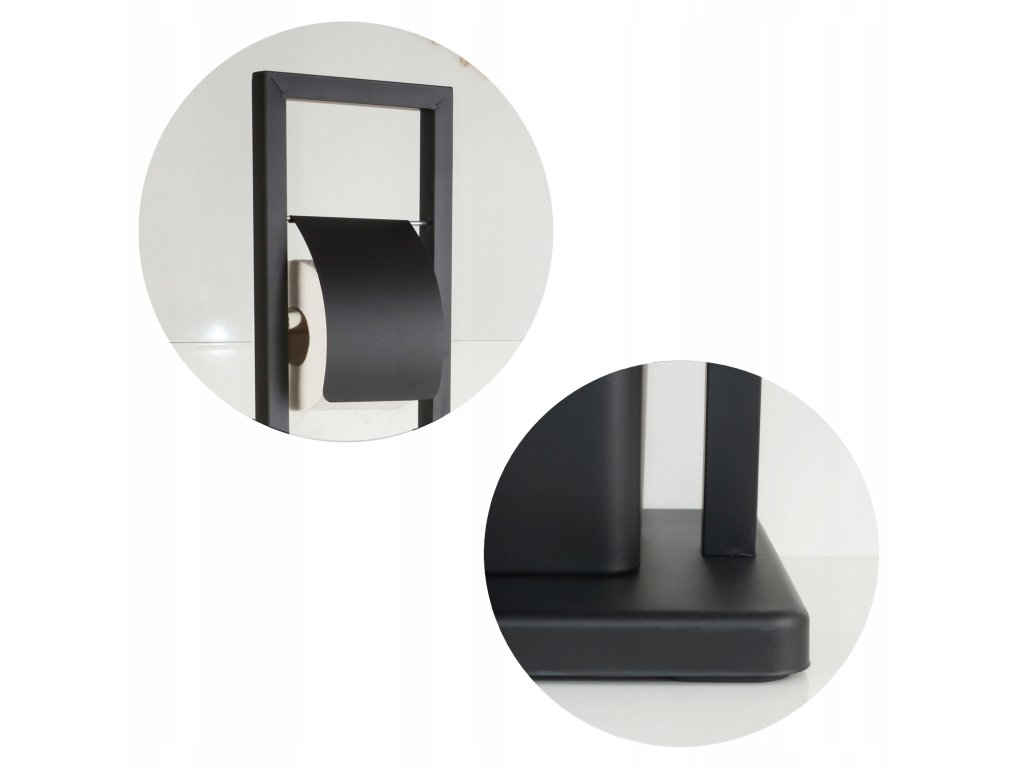 2v1 Praktické statora sú WC a WC Kefa držiak toaletného papiera S klapkou. Stator je vyrobený Vysoko kvalitnej nehrdzavejúcej Čierny náterom. RAM Obsahuje Pevný ZÁKLAD v Tvar štvorce pre stabilitu. Kefa Má Ochranný plastový obal ochranu proti korózii lahko cisty. Ľahký rám uľahčuje Pohyb statora vhodnote Mies. Protisklzová Základňa stojakowi zaisťuje vysokú stabilitu.