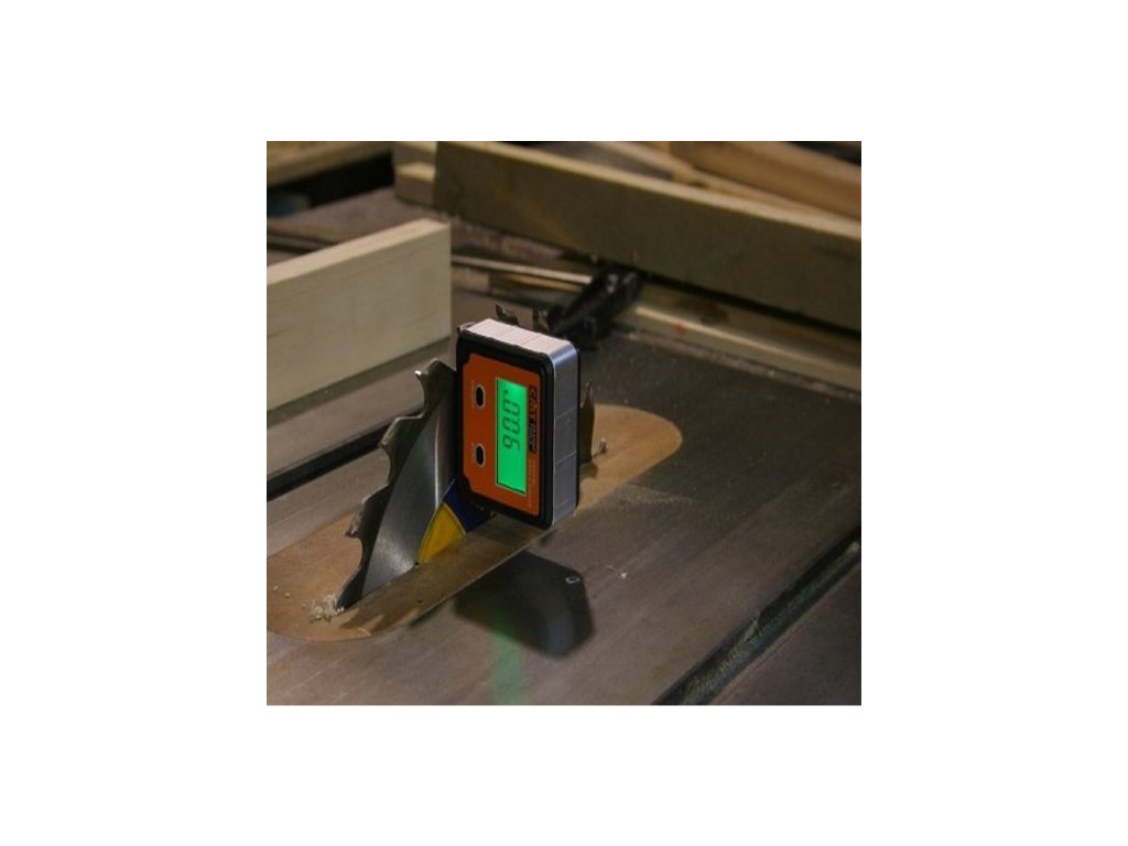 Cyfrowy wskaźnik nachylenia to niewielkich rozmiarów wodoodporny kątomierz, który pozwala na określenie kąta nachylenia w zakresie ±180° z dokładnością do 0,1°. Kątomierz wyposażony jest w magnes, dzięki któremu przywiera do wszystkich żelaznych powierzchni, co ułatwia pomiar nachylenia pił np. w ukośnicach. Wyświetlacz LCD jest czytelny i energooszczędny. Urządzenie jest również wodoodporny Po 5 minutach urządzenie samoczynnie się wyłącza.