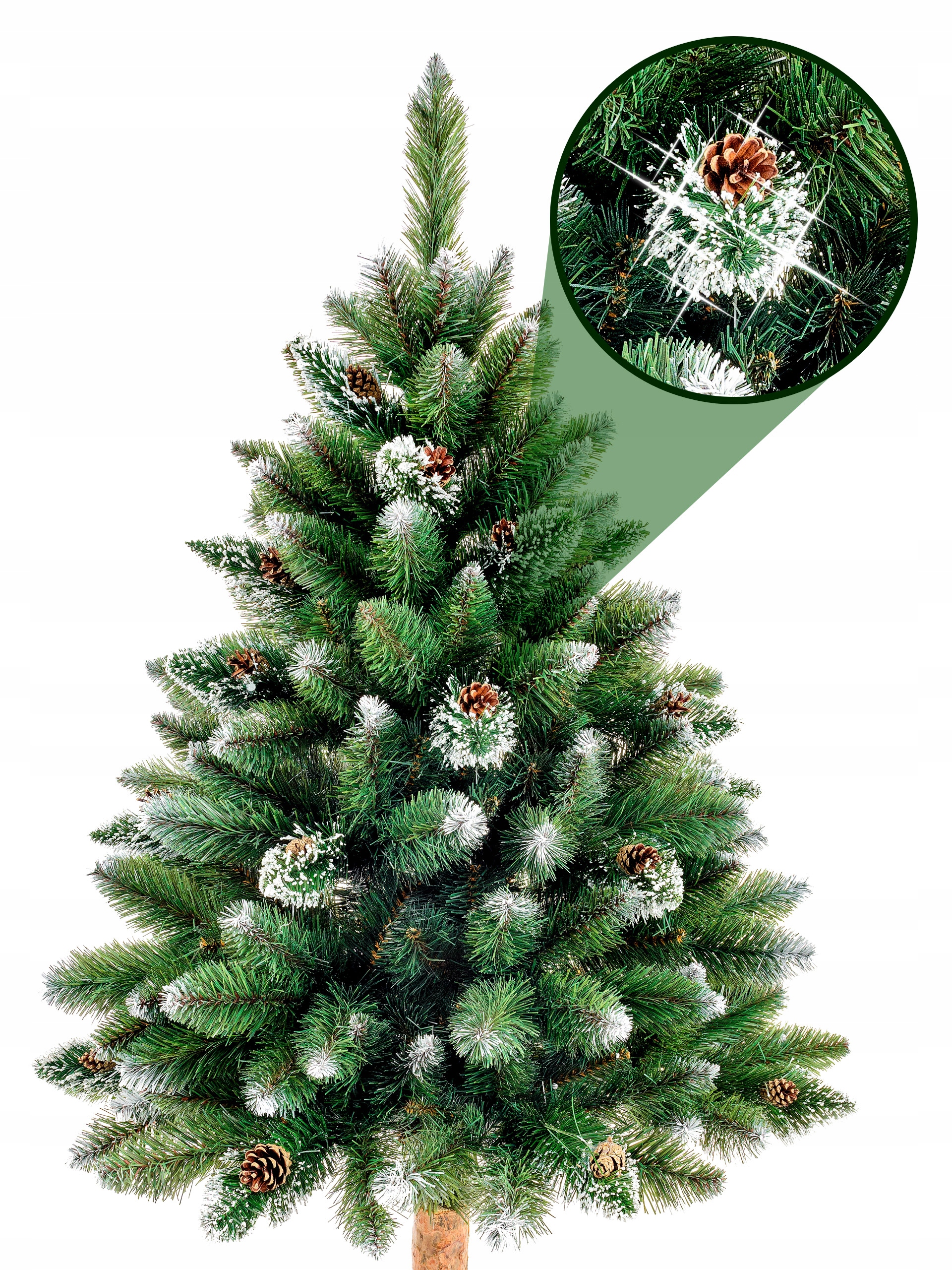 Stromček MONTANA Diamond Pine na prírodnom kmeni je krásny, hustý vianočný stromček s prírodnou šiškou na koncoch ihličia a diamantovými kryštálmi najvyššej kvality, ktoré sa v žiare svetielok krásne lesknú a tvoria vianočný stromček. jedinečný. Prírodný kmeň krásne ladí s vianočným stromčekom a dáva skvelé možnosti aranžovania.