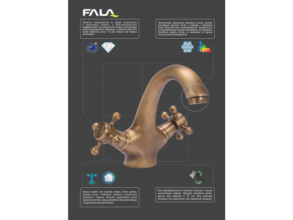 • Kolor: mosiądz antyczny
