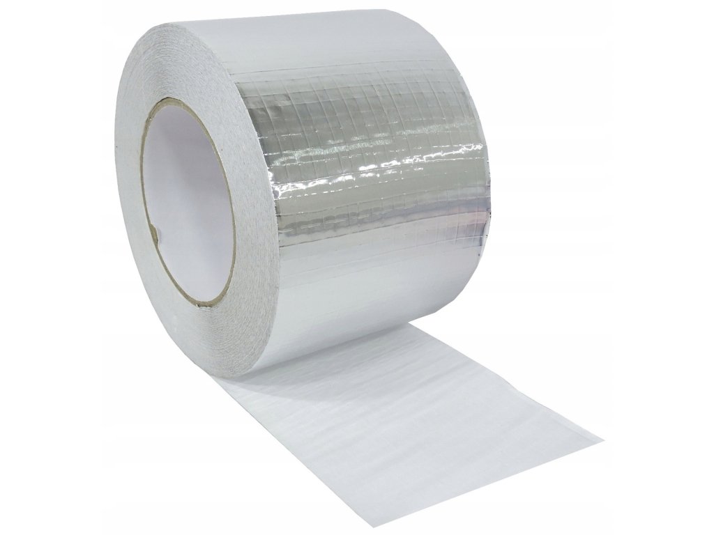 Jednostronna taśma z warstwą aluminium, zbrojona, do klejenia zakładów i naprawy uszkodzeń w foliach aluminiowych oraz paroizolacyjnych.