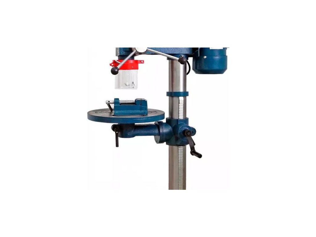 Dodatkowo posiada stabilny, mocny i regulowany stół roboczy oraz imadło maszynowe.