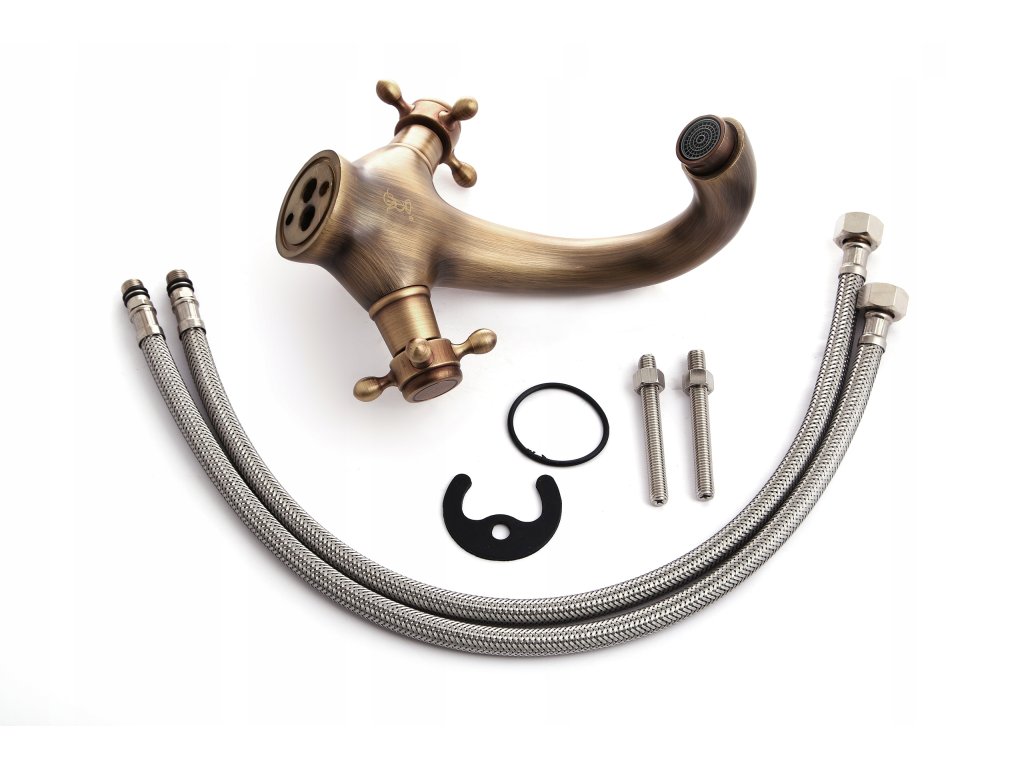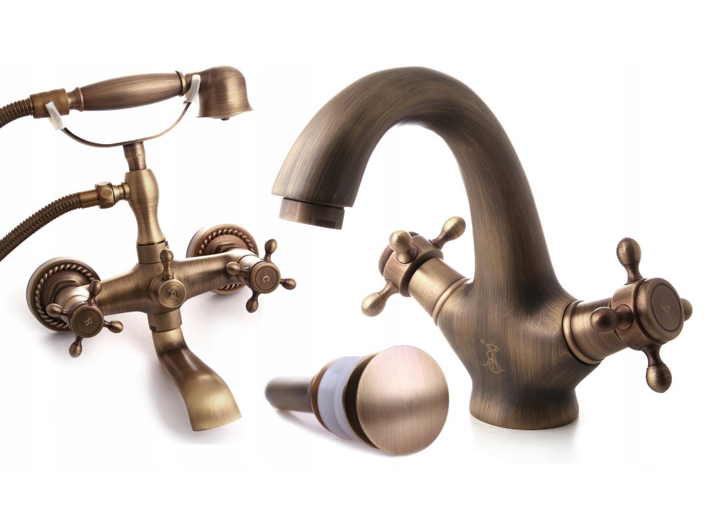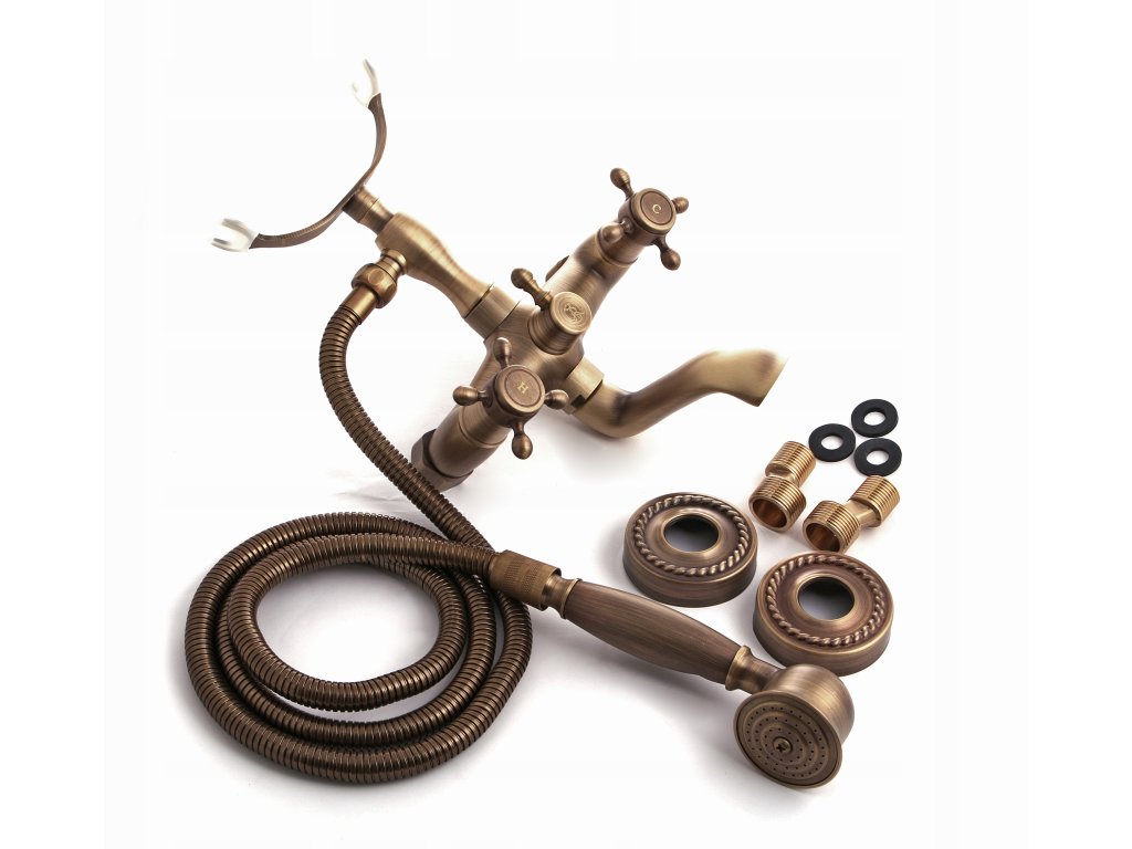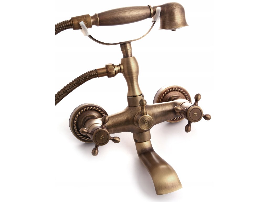 vzhľad a estetika interiéru. Vaňová batéria je určený pre montáž na stenu a montáž panva umywalce.Korpusy batérie boli vyrobené výhradne z mosadze potiahnuté meďou, okrem niekoľkokrát batérie sú pozinkované. Vďaka špeciálnym povrchom batérie sú odolné a ľahko sa čistí. Batérie a všetky ďalšie prvky sú pevné a bude slúžiť po mnoho rokov. Model vaňou je vybavená slúchadlá s rozšíreným prúdom vody. hadice batéria je flexibilný v antickom povrchom.