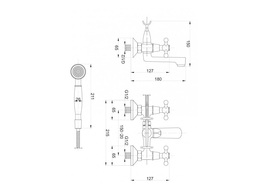 1. bateria wannowa ścienna z prysznicem