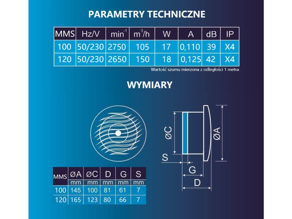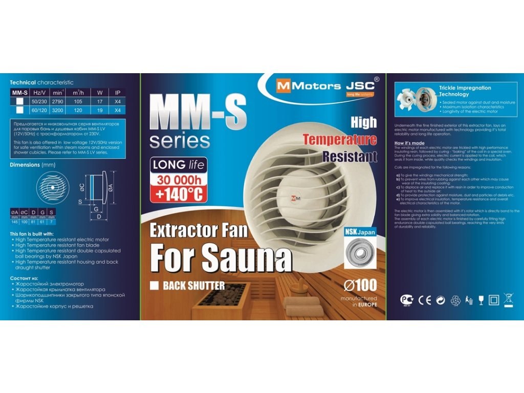Wentylator do sauny i łaźni ścienno-sufitowy MMS
